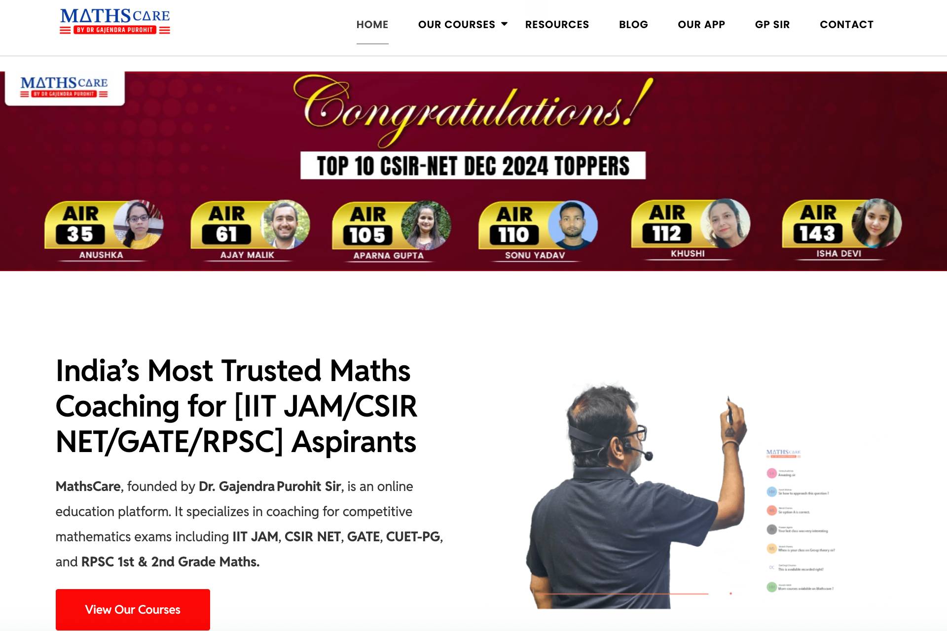 When we first connected with Gp Sir from MathsCare in Udaipur, his website was creating constant problems. It was slow, breaking often, and full of technical issues. Students trying to access it on mobile had a tough time, and the overall experience was far from smooth.